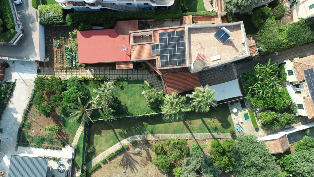 Impianto FV domestico su tetto in coppi da 8 kWp con accumulo da 10 kWh. L’impianto è stato realizzato in formula EPC (Energy Performance Contract) con la quale non è previsto nessun esborso iniziale da parte del cliente ed il risparmio energetico, e conseguente economico, generato dall’impianto viene suddiviso percentualmente tra il cliente e Seienergie per la durata del contratto che in questo caso è pari a 7 anni. L’impianto rimane di proprietà della Seienergie per tutta la durata del contratto, che si occupa della manutenzione ordinaria e straordinaria. Terminata la durata del contratto, la proprietà dell’intervento, e pertanto la totalità dei benefici generati vengono ceduti al cliente.